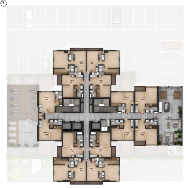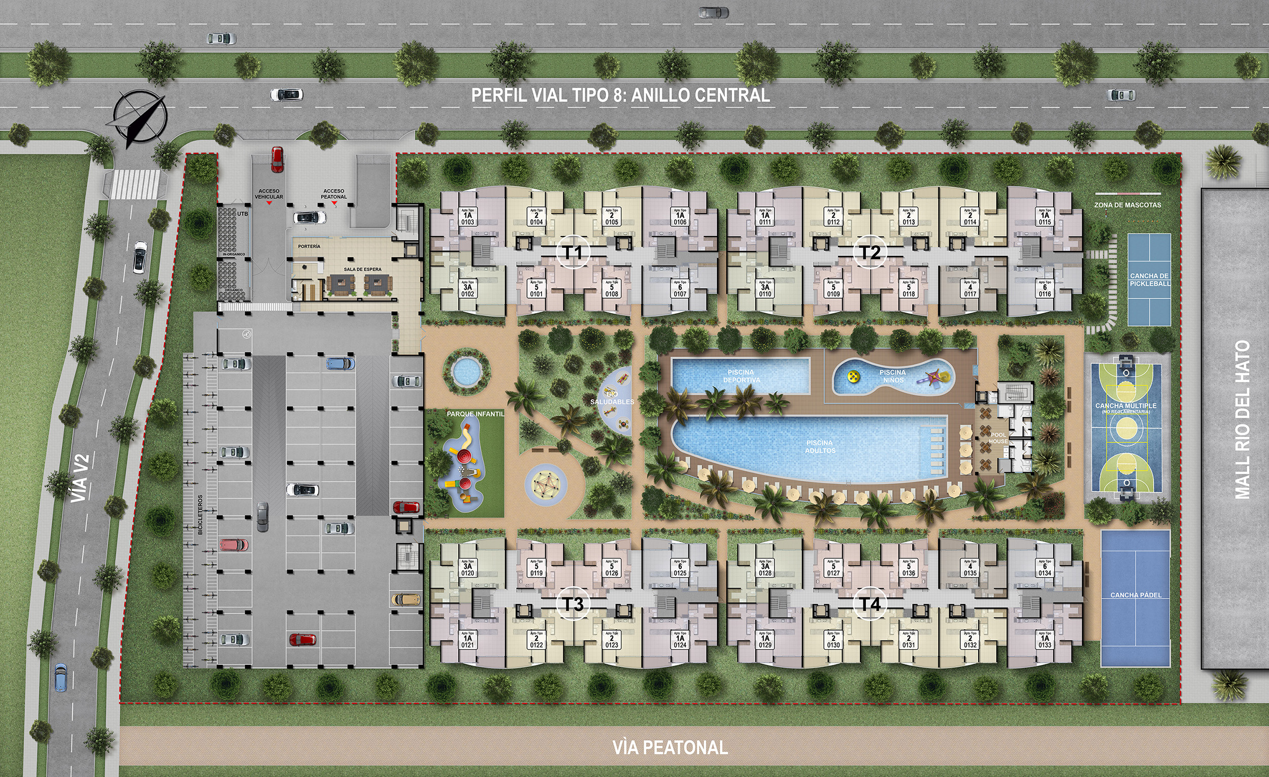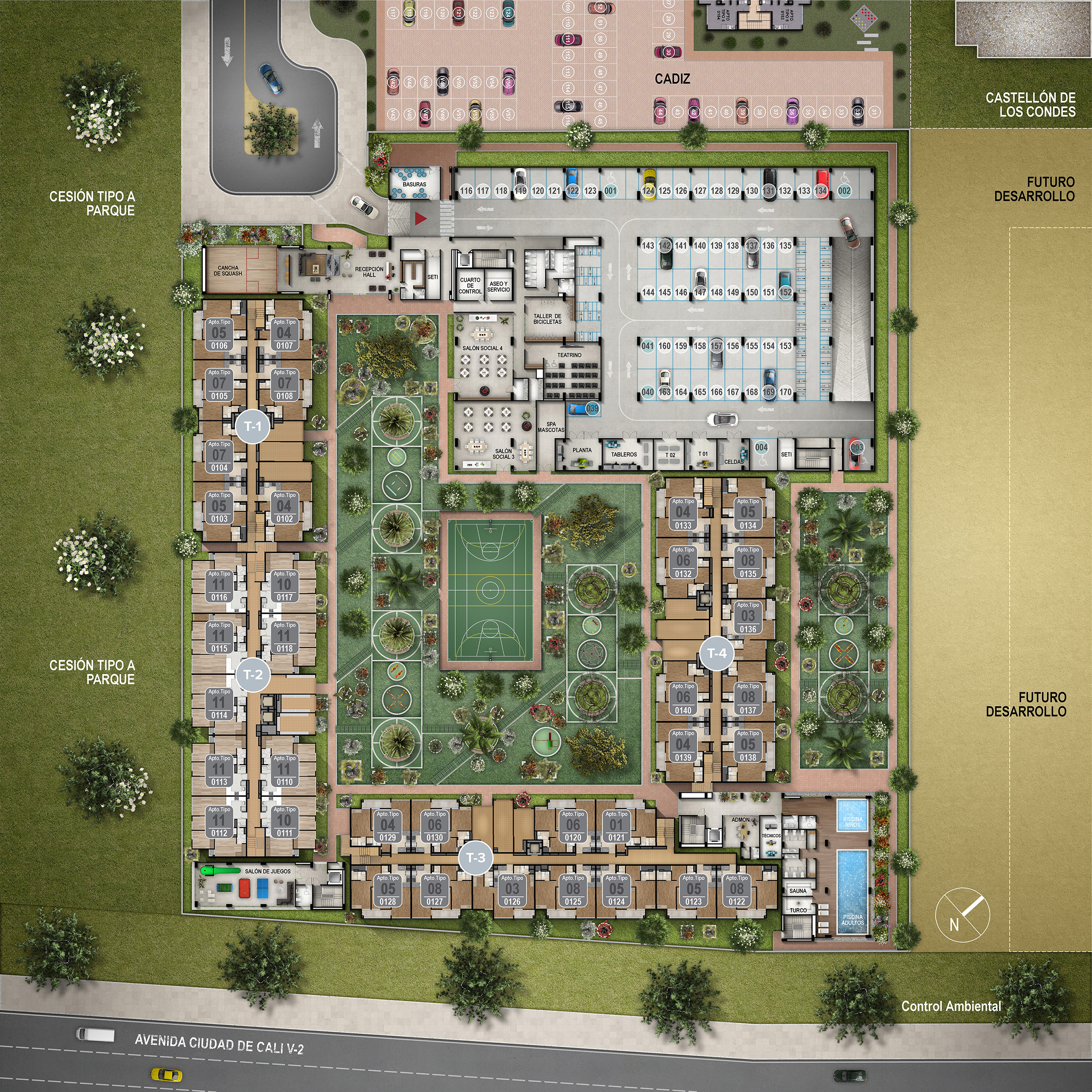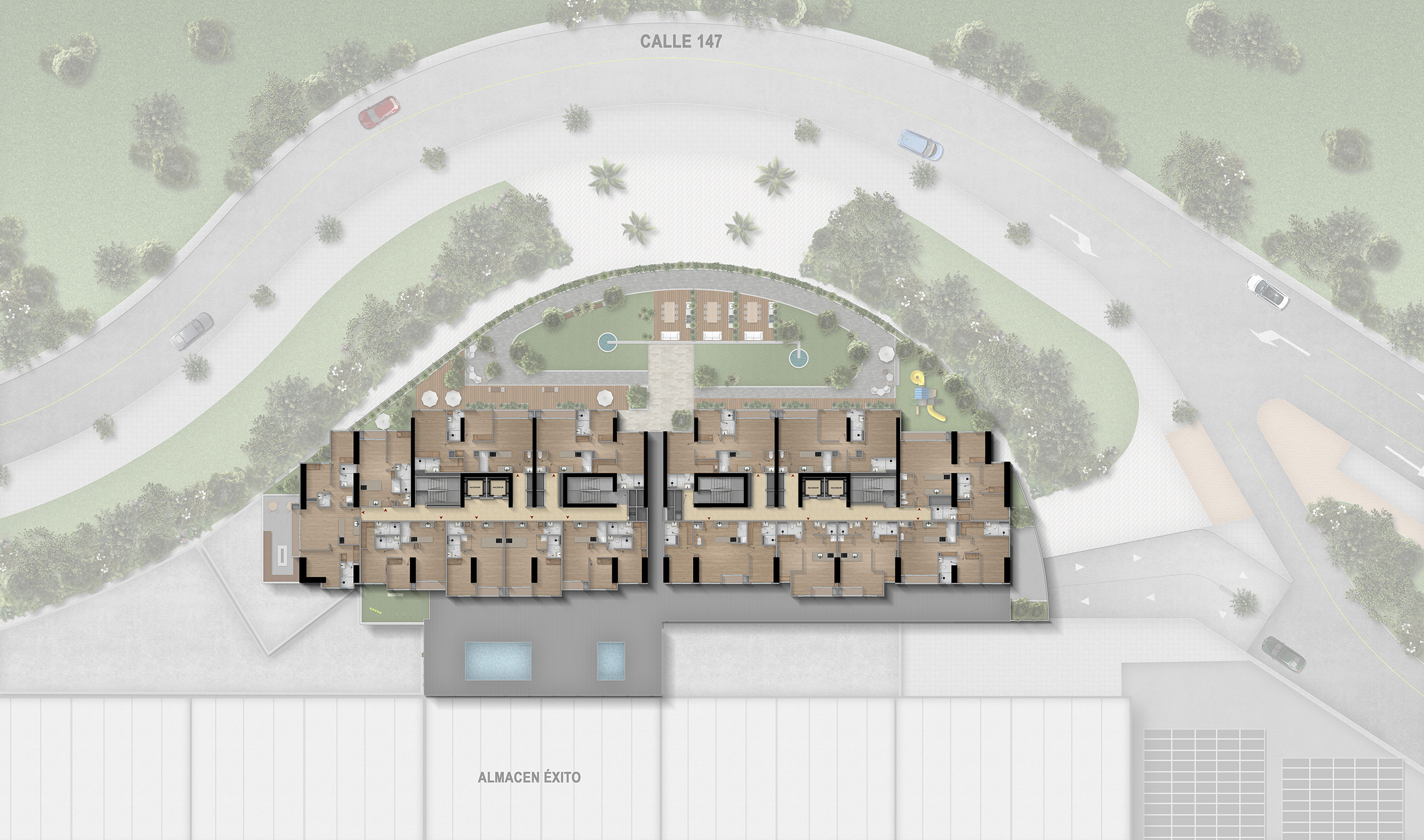 Representaciones en 2D con materiales arquitectónicos y mobiliario, perfectas para brochures y materiales de sala de ventas.